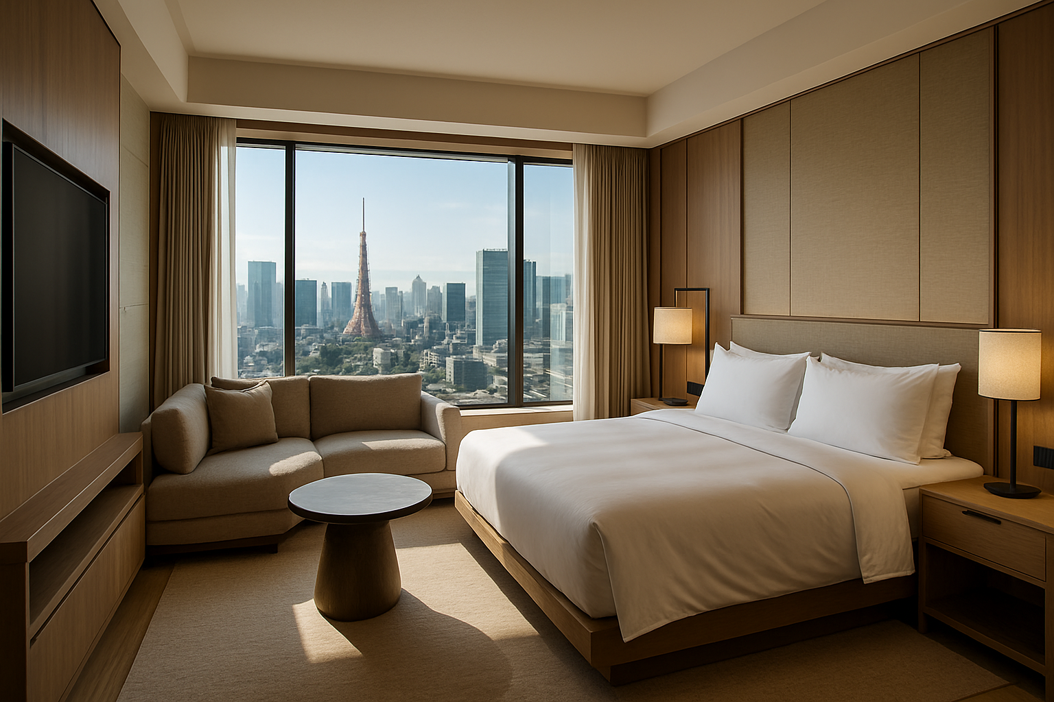 客室はモダンなデザインと日本の美意識が融合し、心安らぐ空間です。ゆったりと配置された上質な家具とリネン、窓から広がるダイナミックな都市の風景が、日常の喧騒を忘れさせます。広々としたバスルームでは、夜景を眺めながらバスタブに浸かる贅沢も。きめ細やかなアメニティが五感を満たし、深いリラクゼーションへと誘う究極のプライベートリトリートを提供します。