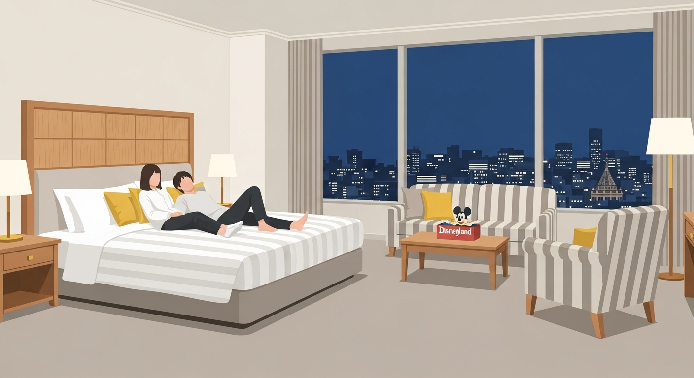 ディズニーランドホテルに2人で安く泊まるには、「1月から2月の平日」「火~木曜日」「予約は4か月前」という3つのポイントが鍵になります。スタンダードルームの下層階を選べば、50,000円前後での利用も可能です。